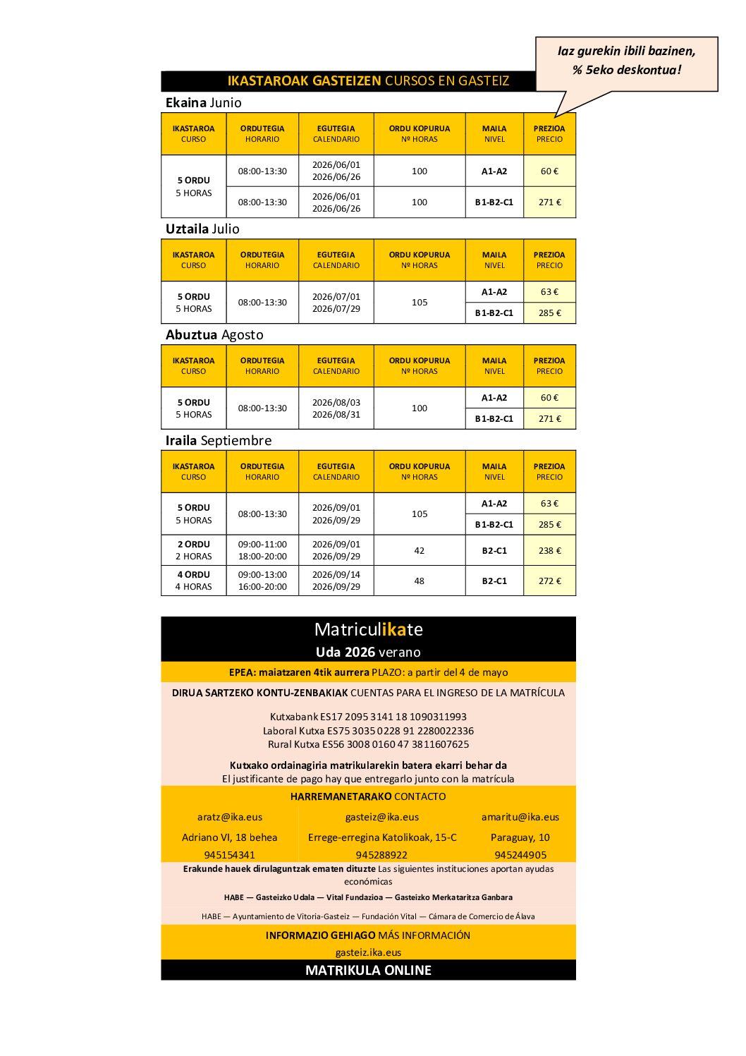 Udako eskaintza (matrikula irekita maiatzaren 4tik aurrera)